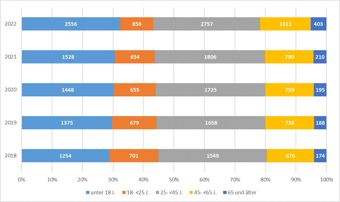 Schutzsuchende in den Jahren 2018-2022 nach Altersgruppen