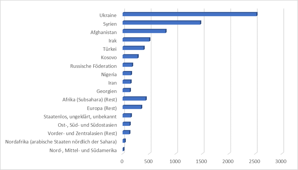 Erläuterungen zur Abbildung „Schutzsuchende im Landkreis Rastatt nach Staatsangehörigkeit im Jahr 2022“: