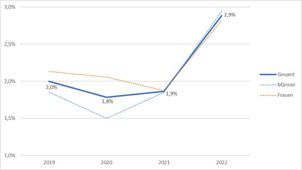 Quotient aus der jährlichen Anzahl der Einbürgerungen und der Zahl der ausländischen Personen mit einer Aufenthaltsdauer ab 8 Jahren insgesamt und differenziert nach Geschlecht.