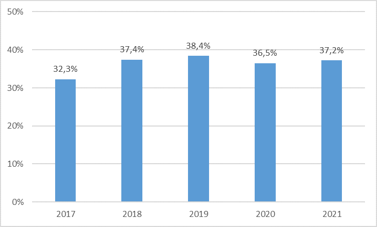 Mehrsprachige Kinder in der Einschulungsuntersuchung in den Jahres 2017-2021
