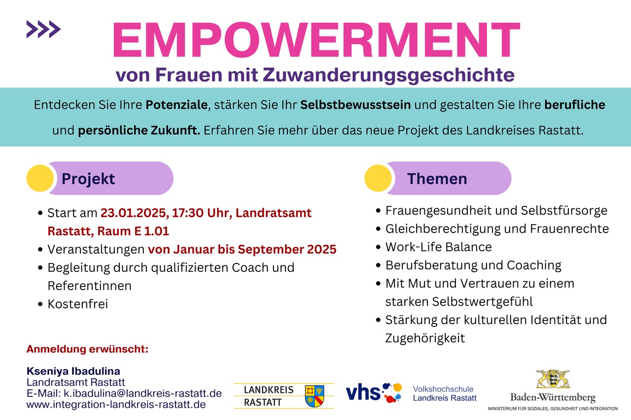 Der Landkreis Rastatt startet ein neues Integrationsprojekt, um gezielt Frauen mit Zuwanderungsgeschichte zu fördern und sie auf ihrem beruflichen Weg zu unterstützen.